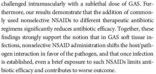 Even worse, if you use any NSAID and get GAS complications, You get hit twice because the NSAID reduces the effectiveness of antibiotics in fighting the infection.